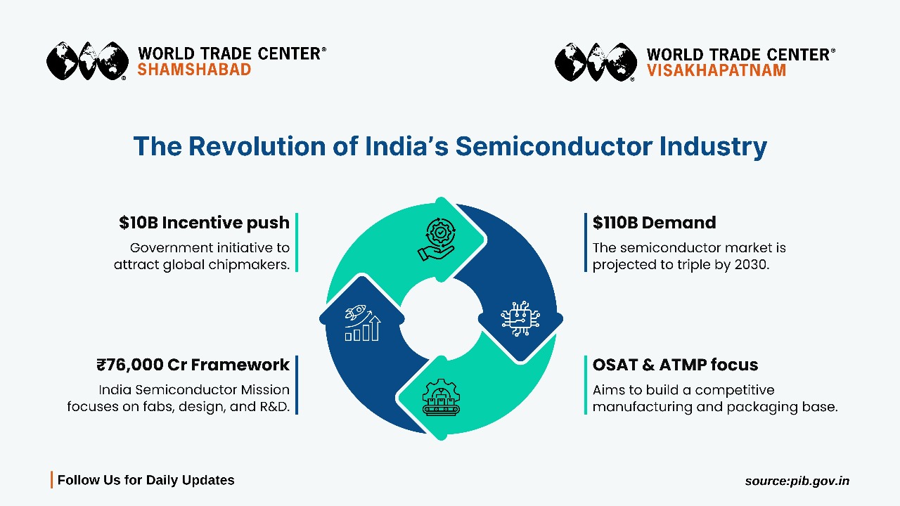 | | | India is driving a $10B push to build its semiconductor future. With demand projected at $110B by 2030, the ₹76,000 Cr India Semiconductor Mission is powering local manufacturing, design, and OSAT(Outsourced Semiconductor Assembly and Testing) capabilities.Building chips, shaping the future. | | |