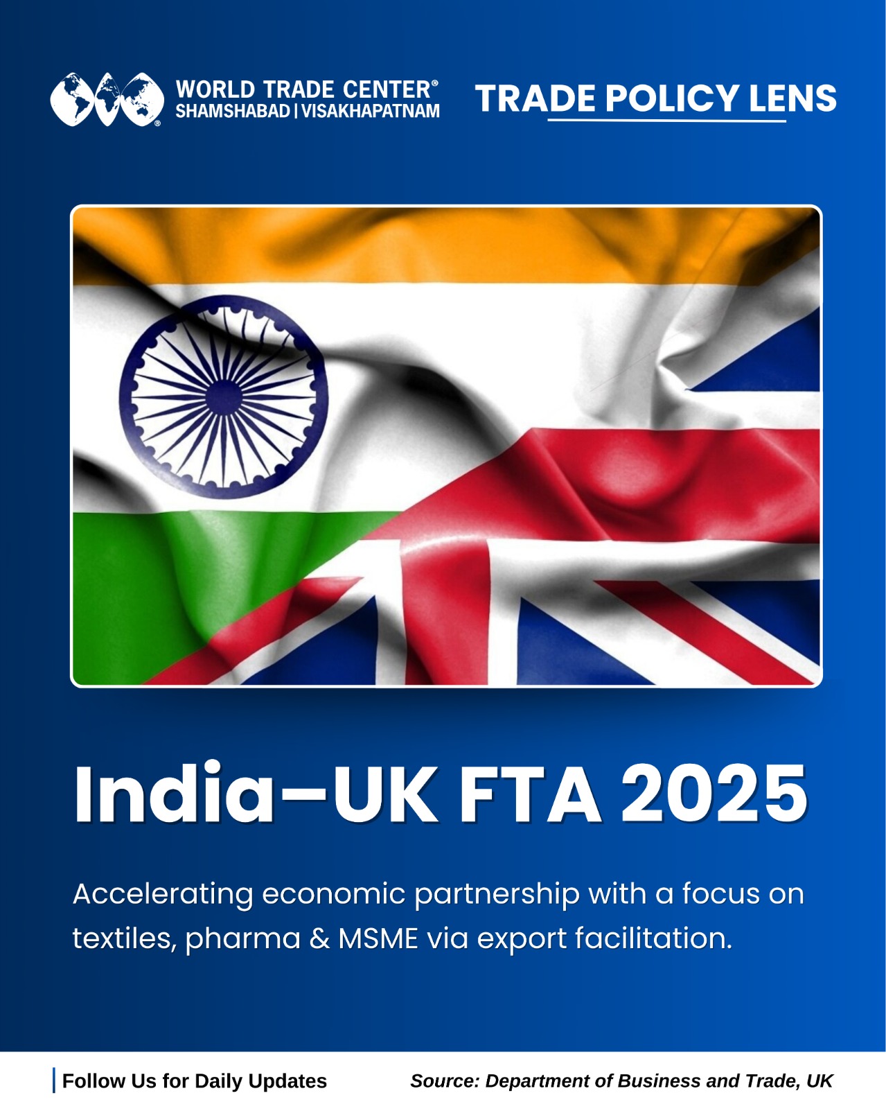 | | India–UK FTA 2025 - Accelerating economic partnership with a focus on textiles, pharma & MSME via export facilitation. | | |