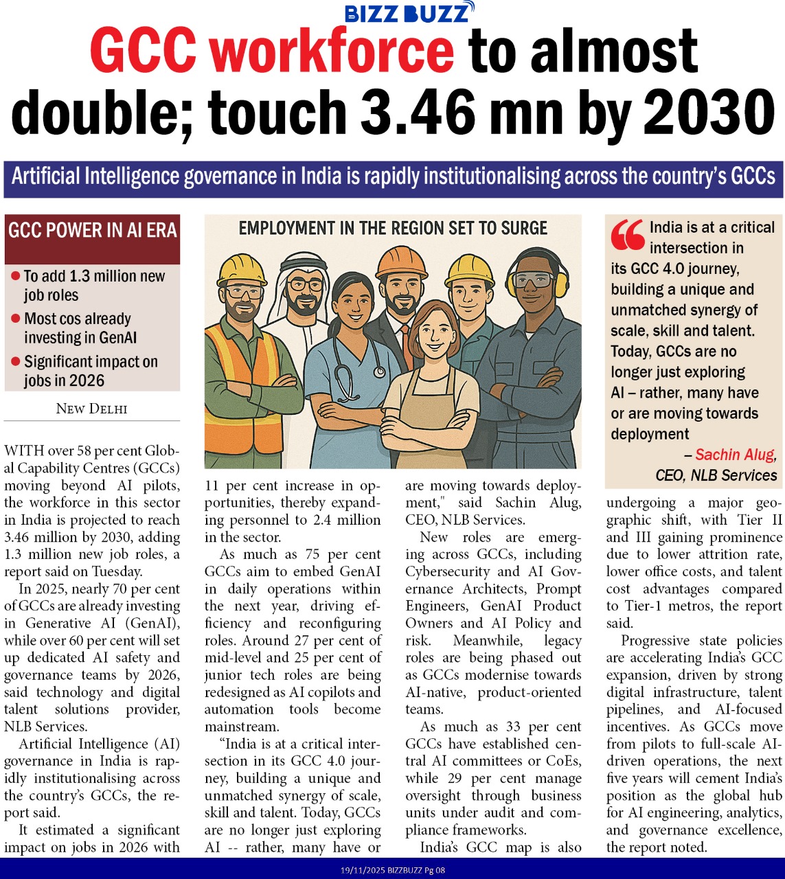 | | | India’s Global Capability Centre (GCC) sector is on a fast track to growth, with the workforce expected to reach 3.46 million by 2030. The rise of Artificial Intelligence is driving this transformation, creating 1.3 million fresh job roles and fueling India’s leap into advanced AI governance and GenAI integration. Over 70% of GCCs are moving beyond AI pilots to mainstream adoption, embracing new roles like cybersecurity and prompt engineering.