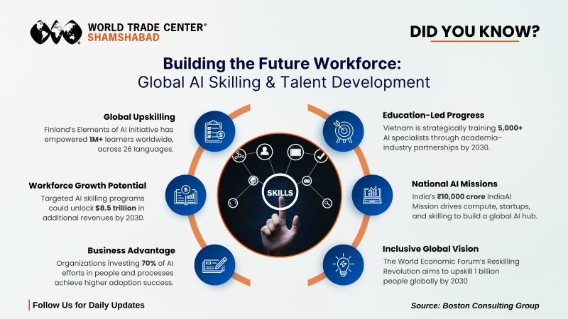 | | | Global AI skilling is emerging as a critical driver of workforce and economic growth. Finlandโs Elements of AI has trained over ๐๐ learners worldwide, while Vietnam is preparing ๐,๐๐๐+ AI specialists by 2030 through academiaโindustry partnerships. Indiaโs โน๐๐,๐๐๐ ๐๐ซ๐จ๐ซ๐ IndiaAI Mission is fueling compute, startups, and talent development, and the World Economic Forumโs Reskilling Revolution aims to upskill ๐ ๐๐ข๐ฅ๐ฅ๐ข๐จ๐ง people globally. | | |