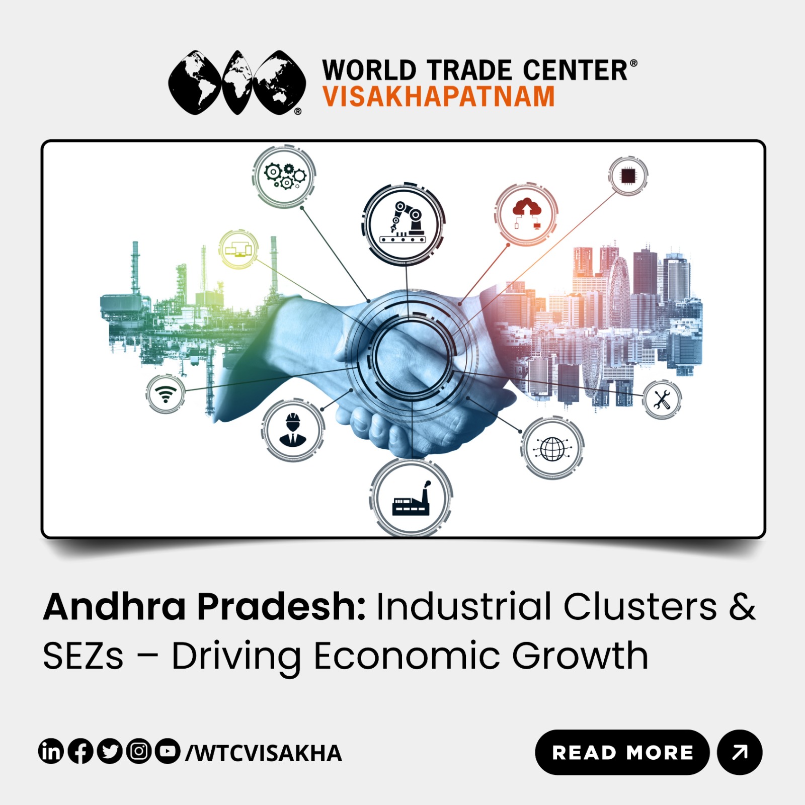 | | | Andhra Pradesh is building its status as a global industrial powerhouse through SEZs and Economic Clusters. Key Highlights: Pharma Clusters in Visakhapatnam & Vijayawada are powering global competitiveness. - Textile hubs in Chittoor and Guntur that help SMEs reach global markets.
